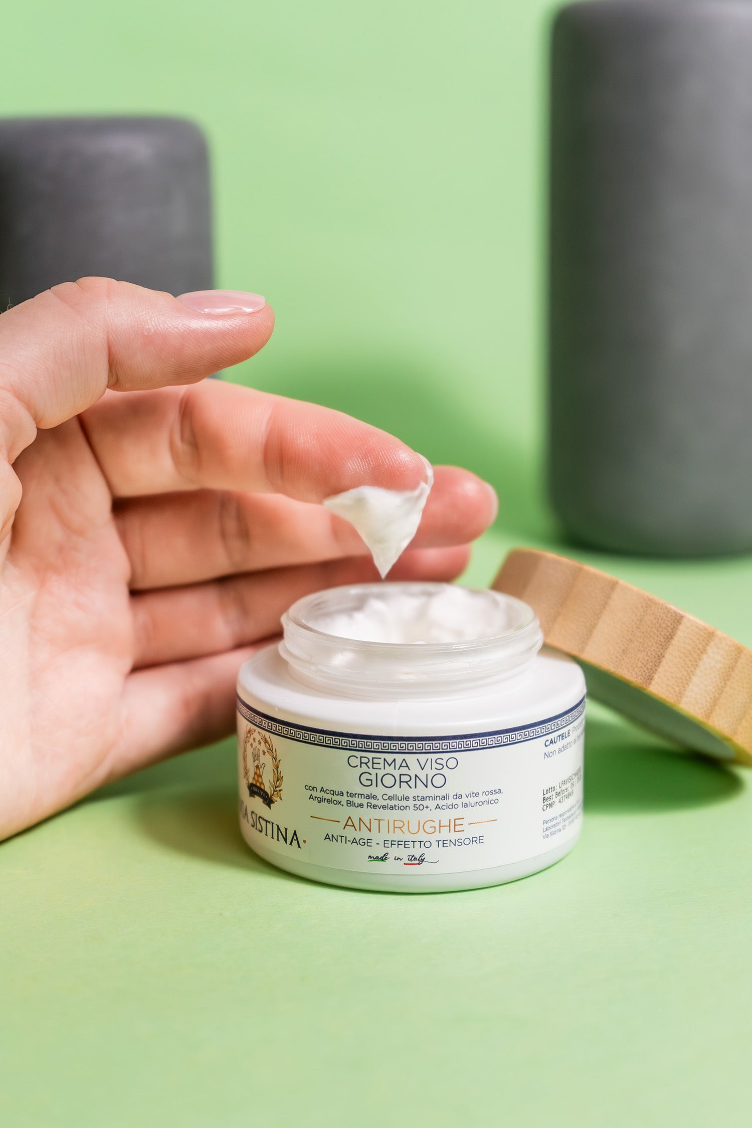 Лека и копринена емулсия на основата на термална вода, арганово масло, витамин Е и хиалуронова киселина с високо и ниско молекулно тегло.