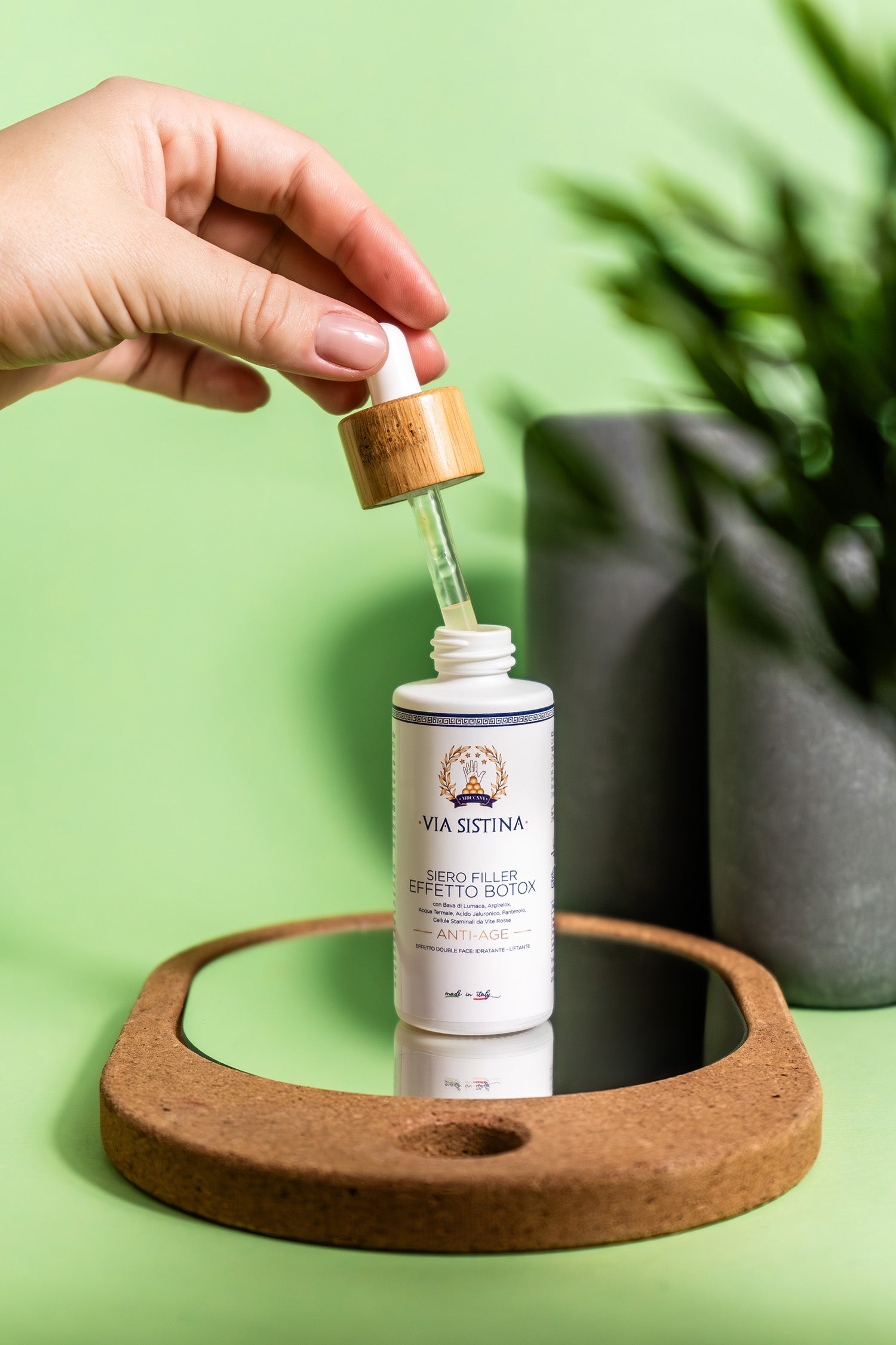 Серумът с ботокс ефект съчетава анти-ейдж действие с незабавен лифтинг ефект благодарение на 'двойното лице' на формулата.